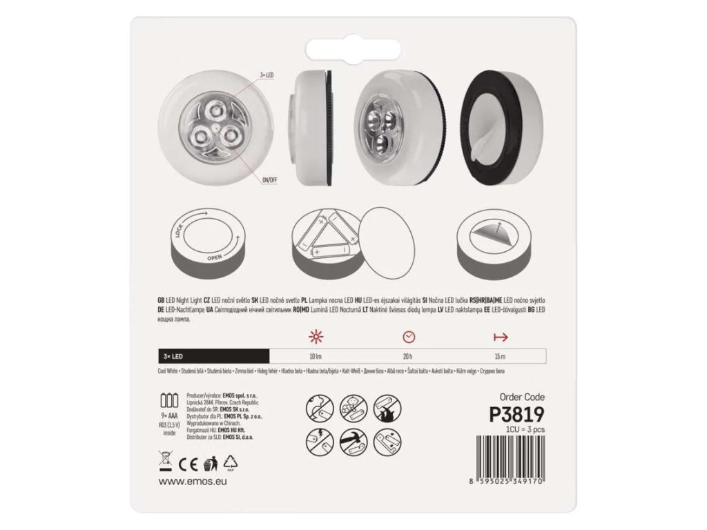 Samolepící LED světlo Emos P3819 10 lm, 3x AAA