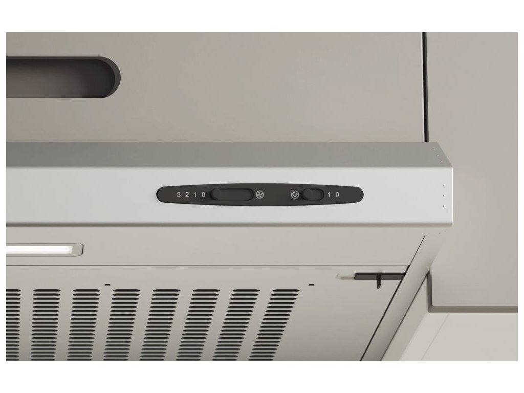 závěsný odsavač, 1 motor 80 W, maximální výkon odsávání 210 m3/h, 1x28 W halogenová žárovka, hliníkový tukový filtr, 3 úrovně výkonu, šíře 60 cm, cena včetně 1 ks uhlíkového filtru , barva: nerez. Rozměry výrobku v x š x h 8 x 60 x 46,5 cm
