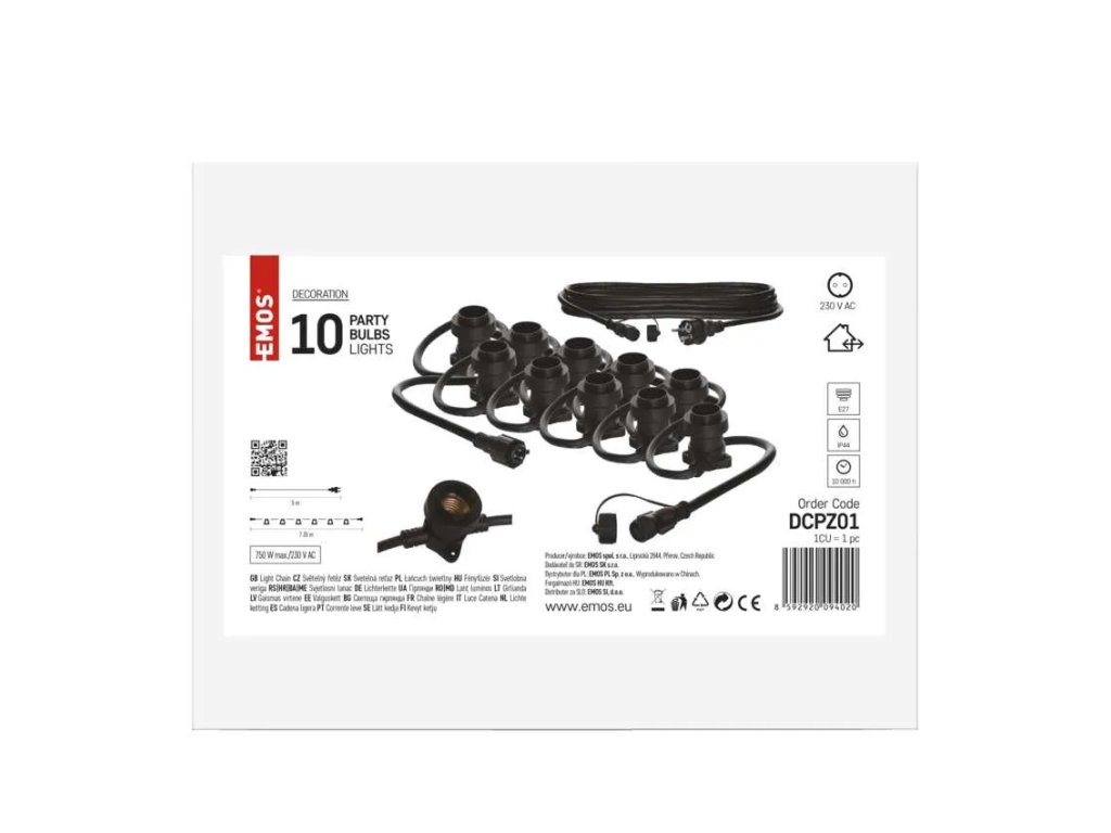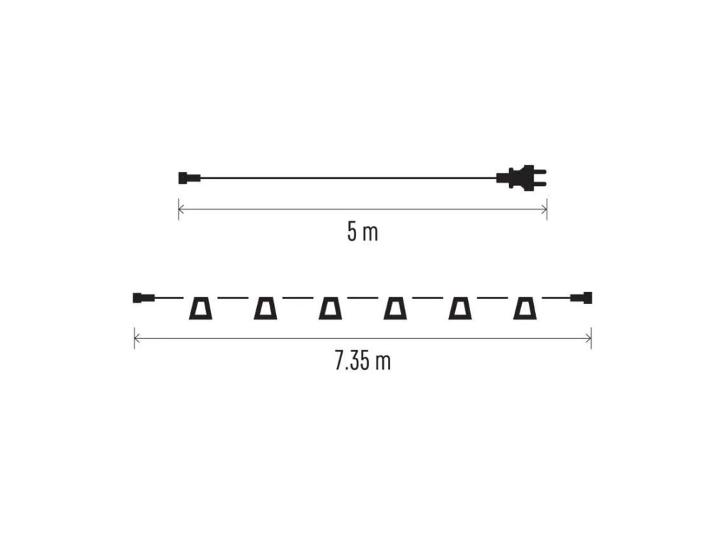 Světelný řetěz na 10 žárovek E27 Emos DCPZ01 START SET, 7,35 m, venkovní i vnitřní, spojovací