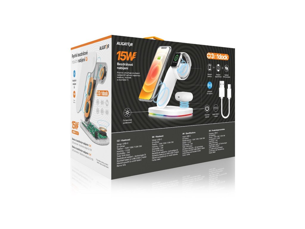 Bezdrátová Qi dok.stanice /nabíječka/ 3v1 Apple watch, 15W, bílá Alig.AS03WT